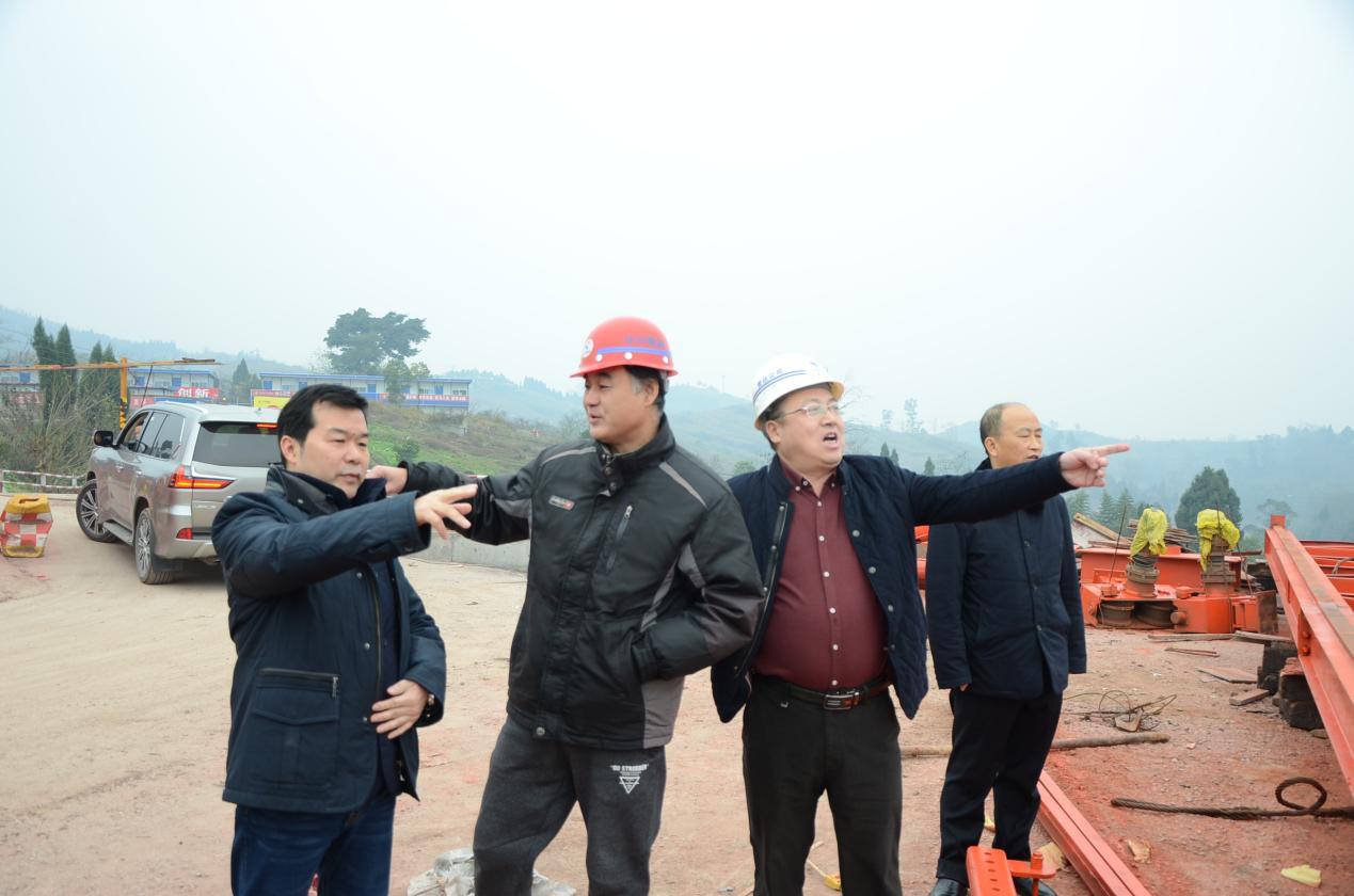 謝董事長一行深入鐵山隧道出口、鐵山互通及L連接線、LJ07合同段一號(hào)梁場及州河特大橋引橋營山岸橋臺(tái),調(diào)研了施工進(jìn)度、下步工期安排。