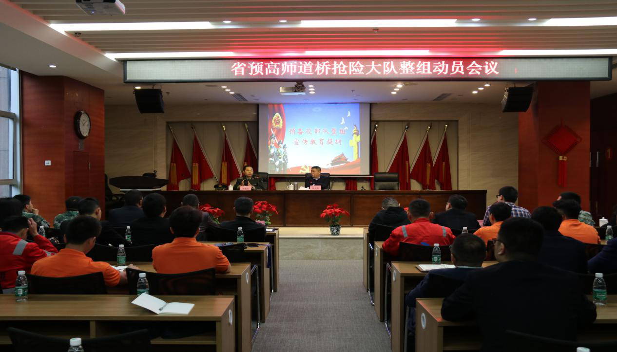 4月19日,省預高師道橋應急搶險大隊整組動員會在集團一樓多功能會議室召開。本次會議由集團公司安委會副主任楊開榮主持,中國人民解放軍四川陸軍預備役高射炮兵師(下稱預高師)工兵營營長任英杰、師道橋應急搶險大隊全體官兵參加會議。
