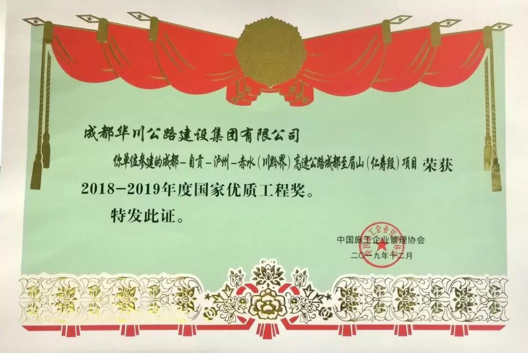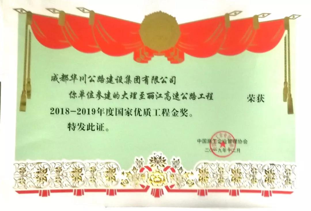 集團(tuán)在2018年組織申報(bào)的“大理-麗江高速公路”、“成都-自貢-瀘州-赤水高速成仁段”項(xiàng)目于今年12月分別榮獲“國家優(yōu)質(zhì)工程金獎(jiǎng)”、“國家優(yōu)質(zhì)工程獎(jiǎng)”兩項(xiàng)殊榮,實(shí)現(xiàn)了集團(tuán)參建工程在國家優(yōu)質(zhì)工程(金)獎(jiǎng)上的突破。