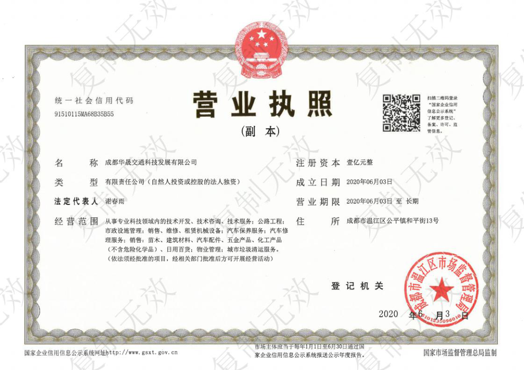 為滿足集團(tuán)投資的高速公路運(yùn)營養(yǎng)護(hù)需要,結(jié)合交通科技行業(yè)發(fā)展趨勢,充分整合交通科技資源,延伸拓展“投資建設(shè)運(yùn)營”全產(chǎn)業(yè)鏈綜合競爭實(shí)力。經(jīng)集團(tuán)七屆二次董事會(huì)審議批準(zhǔn),6月3日集團(tuán)注冊成立了全資子公司成都華晟交通科技發(fā)展有限公司。