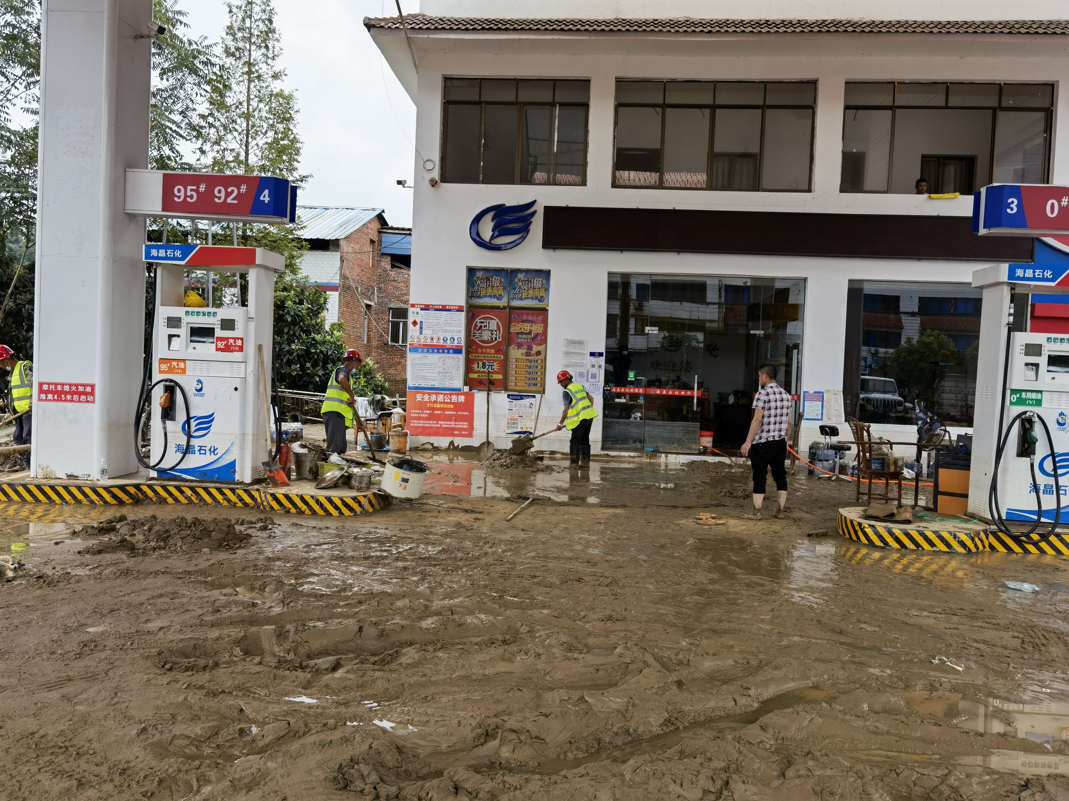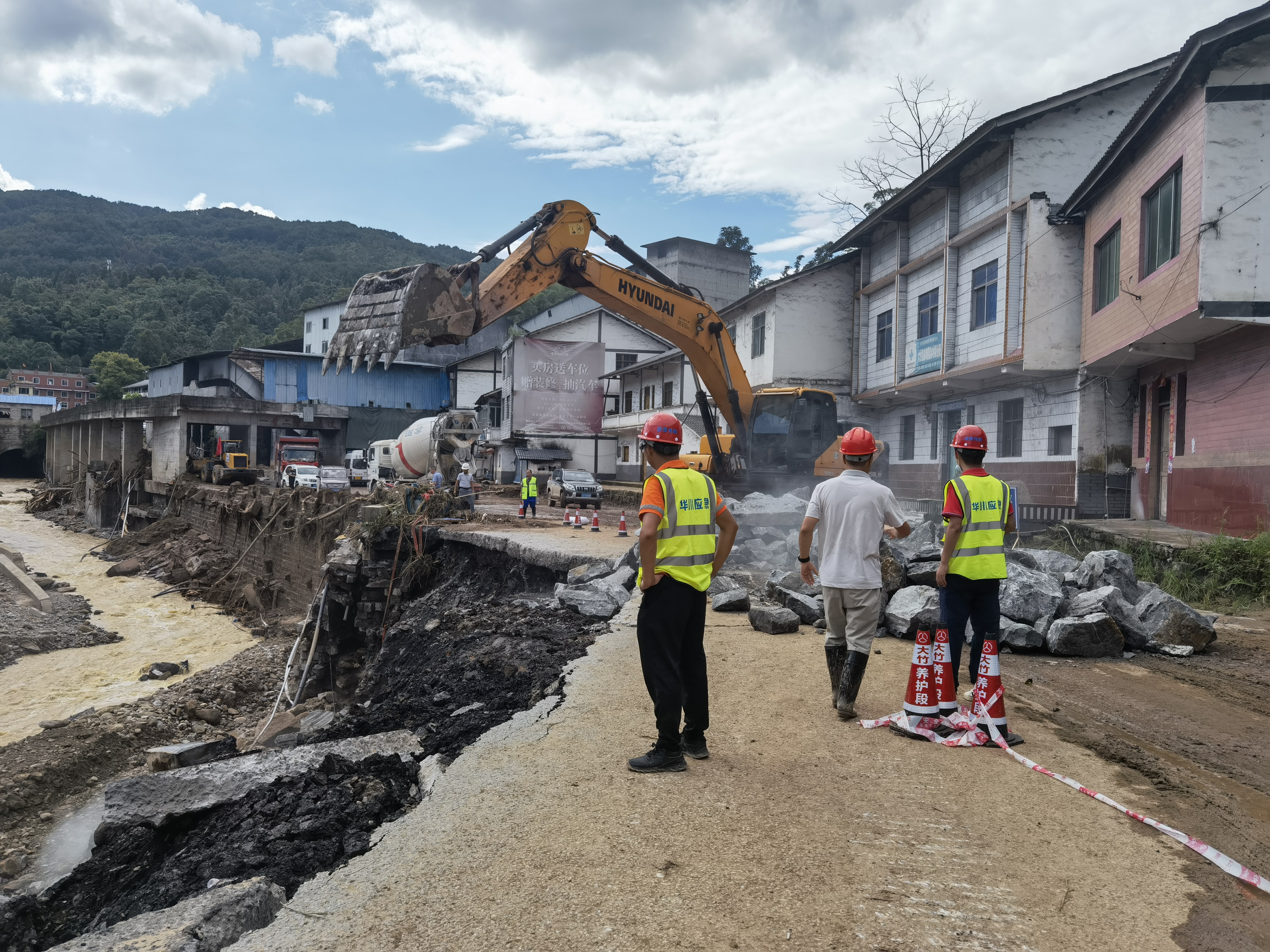 9日上午,突擊隊(duì)人員清除沿線加油站淤泥。根據(jù)省廳指揮部指令,華川集團(tuán)、四川路橋、中鐵二十三局于9日中午共同研究制定水毀路段修復(fù)保通初步方案。下午4時(shí)30分,完成擋墻基坑作業(yè),并隨即展開片石回填施工。
