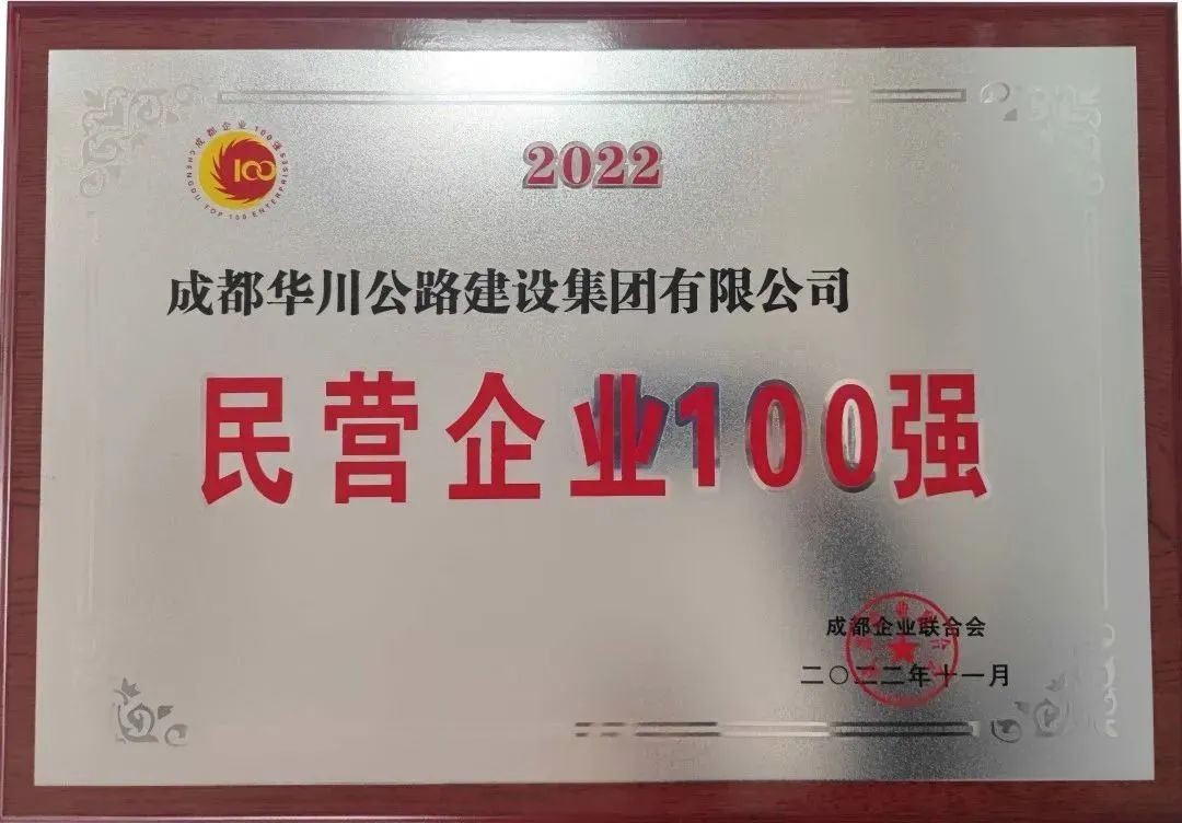 2022年11月25日,成都企業(yè)聯(lián)合會正式發(fā)布“2022成都企業(yè)100強”系列榜單。集團再次榮獲2022年“成都市民營企業(yè)100強”榮譽稱號。