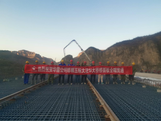 隨著年度通車目標的日益臨近,華霆公司邯鄲五標的生產進度也快馬加鞭地有序推進。12月4日,華霆公司邯鄲五標又一次迎來了關鍵性工程節(jié)點,大洼1#大橋橋面板順利實現(xiàn)全幅貫通。