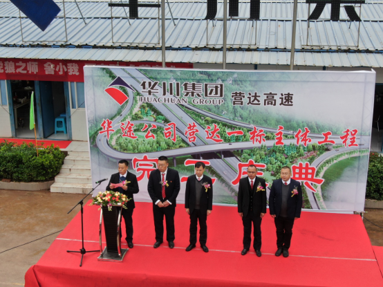 慶?;顒?dòng)首先由華途公司董事長鄭高金致辭,他對(duì)各級(jí)領(lǐng)導(dǎo)全力幫助和大力支持、對(duì)營達(dá)LJ01合同段和華途公司表示感謝,鄭高金說:華途公司作為同時(shí)參建集團(tuán)“三大戰(zhàn)役”的專業(yè)路橋子公司,在繼河北邯鄲一標(biāo)和湖南懷芷一標(biāo)均率先完成施工任務(wù)后,我們營達(dá)LJ01合同段也于2019年11月24日完成全部主體結(jié)構(gòu)施工,標(biāo)志著華途公司所參建的“三大戰(zhàn)役”全面勝利。相信在集團(tuán)的帶領(lǐng)下,這支根正苗紅、忠厚善良、特別能吃苦,講政治、顧大局的團(tuán)隊(duì)將繼續(xù)發(fā)揮“虎狼之師”精神,全力打造“華川品質(zhì) 品質(zhì)華川”。