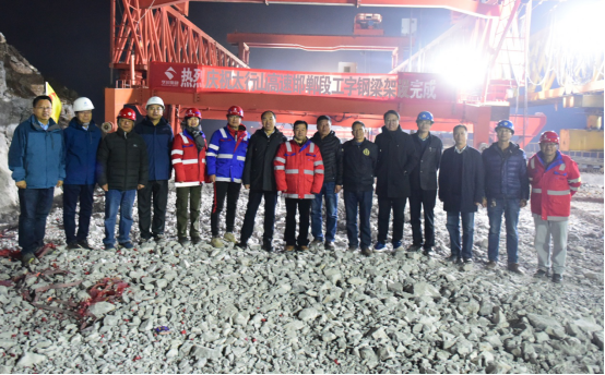集團(tuán)黨委書記、董事長(zhǎng)、總裁謝應(yīng)文,河北交投集團(tuán)紀(jì)檢書記李海衛(wèi),中電建冀交投資發(fā)展有限公司總經(jīng)理唐蘭軍,集團(tuán)副總裁熊文,集團(tuán)總裁助理、華北片區(qū)指揮長(zhǎng)陳杰,集團(tuán)總裁助理、華北片區(qū)常務(wù)副指揮長(zhǎng)牟世輝,邯鄲項(xiàng)目各參建子公司負(fù)責(zé)人等來(lái)到現(xiàn)場(chǎng),共同見(jiàn)證了最后一榀鋼箱梁假設(shè)。謝總在現(xiàn)場(chǎng)談到:這次太行山攻堅(jiān)戰(zhàn)充分展現(xiàn)了我們?nèi)A川集團(tuán)“頑強(qiáng)拼搏,永不言敗”的精神,全體施工管理人員眾志成城,排除萬(wàn)難,向著一個(gè)目標(biāo)奮力拼搏。感謝全體參建人員的辛勤付出,感謝各級(jí)單位的全力支持。我們大家都是奮戰(zhàn)在太行山的戰(zhàn)友,這段時(shí)間在施工一線我看到了很多感人的事,認(rèn)識(shí)了很多樸實(shí)勤奮的筑路人,他們起早貪黑、加班加點(diǎn)全力為目標(biāo),我為我們光榮的路橋人感到自豪。