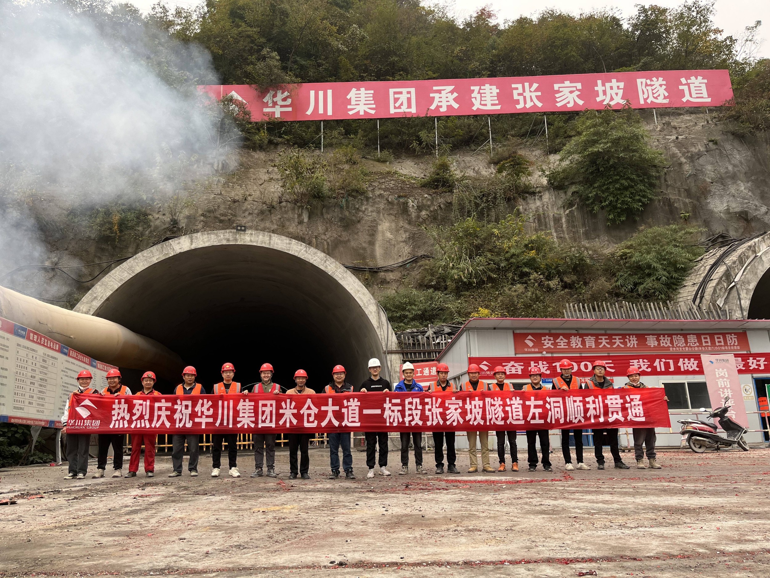 自張家坡隧道開工以來,120余名隧道管理及作業(yè)人員團(tuán)結(jié)協(xié)作,期間克服材料供應(yīng)困難、暴雨等極端惡劣天氣造成的便道通行困難,秉承“頑強(qiáng)拼搏、永不言敗”的華川精神,抓質(zhì)量、搶進(jìn)度、保安全,最終圓滿地完成了隧道貫通任務(wù),取得了隧道貫通安全事故為“0”,質(zhì)量事故為“0”的好成績。